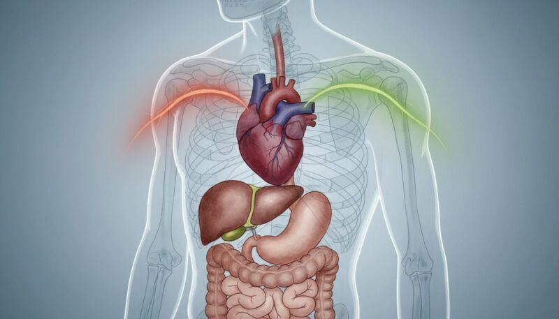 肩甲骨まわりの痛みは、内臓の不調によって生じる場合もあります。