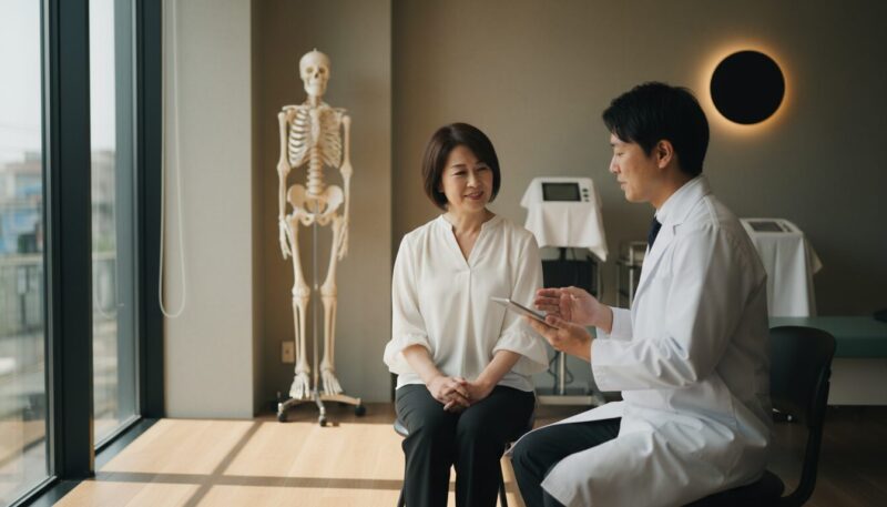 女性ホルモンの減少により、骨密度が急速に低下する時期です。閉経後は特に注意が必要で、定期的な検査が骨折予防の第一歩となります。