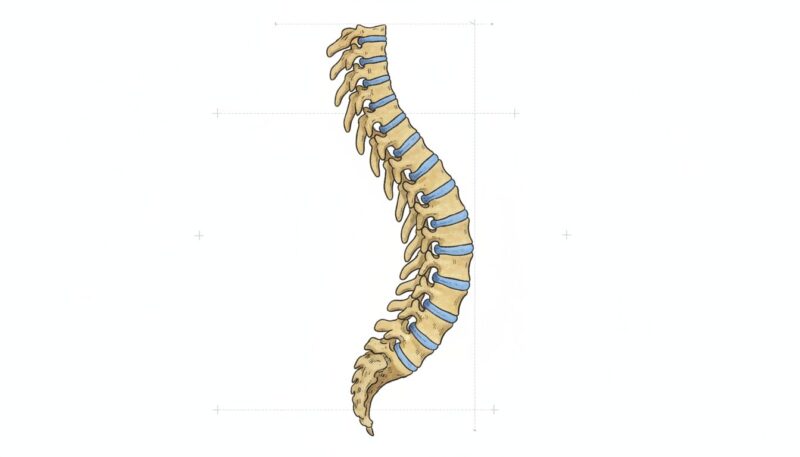 首の骨(頚椎)は前方に凸のカーブを描き、背中の骨(胸椎)は後方に丸まり、腰の骨(腰椎)は再び前方に凸のカーブを描きます。このS字カーブが、体重を分散させ、衝撃を吸収する役割を果たしているのです。